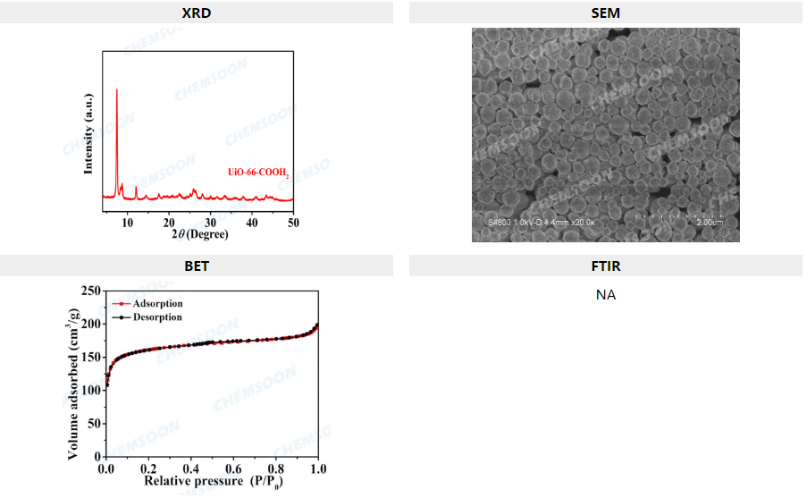 1)  COOH-UIO-66 性質穩定,在水溶液和酸性條件下穩定。