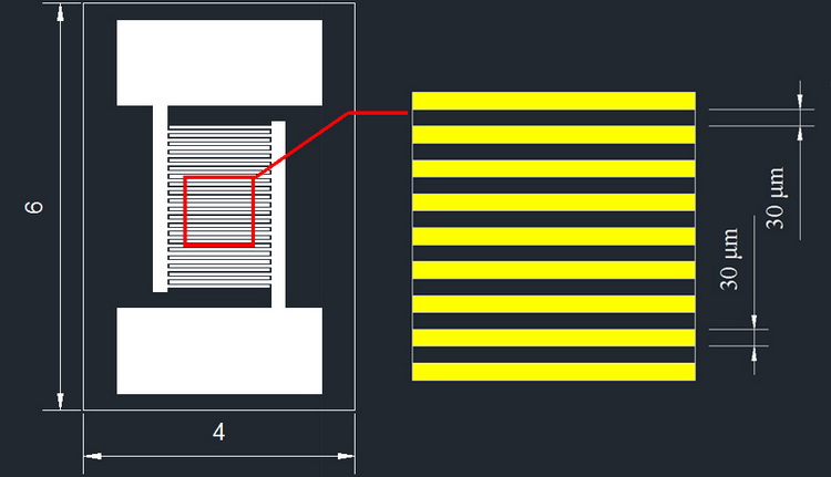 我們提供各種叉指電極,包括不同形狀,不同尺寸,不同線寬線距,不同基材(氧化鋁陶瓷,PI/PET柔性材料,單晶硅),不同工藝(厚膜工藝,PCB工藝,MEMS 工藝)