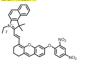 近紅外硫化氫探針 分子式:C37H32IN3O6 分子量:741.57 備注:硫化氫的檢測,激發(fā)波長680 nm,發(fā)射波長741 nm
