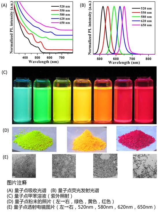 油溶性CdSe/ZnS 量子點 高亮綠光和紅光 PL 480 nm--660 nm