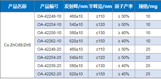 油溶性Cu摻雜ZnCdS 量子點 PL 480 nm--620 nm