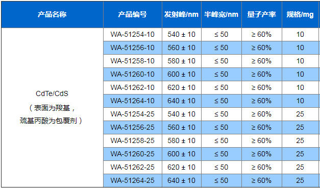 水溶性CdTe/CdS 量子點 PL 540 nm--640 nm