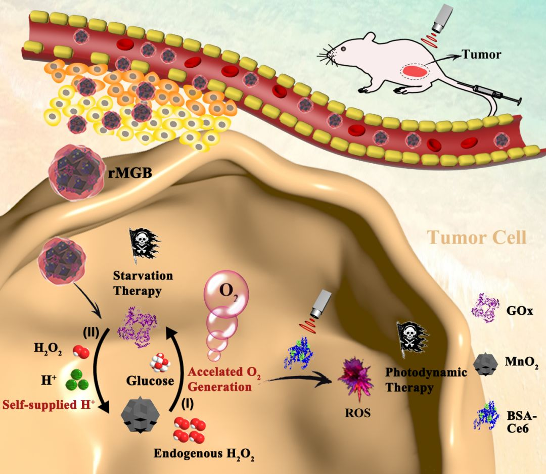 1、尤其對乏氧腫瘤具有較強的饑餓治療和PDT協同治療作用,在體內外均有較強的抗腫瘤作用;