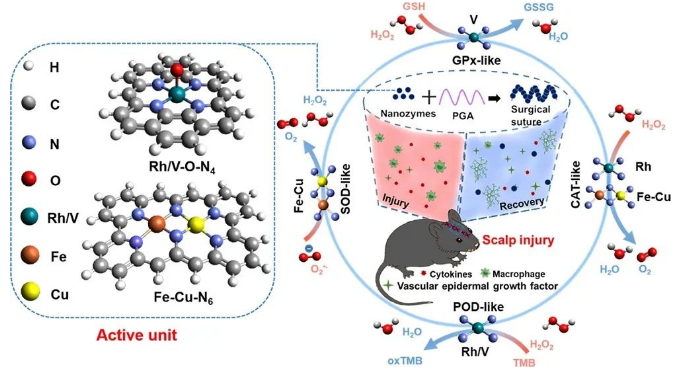 Single-atom nanozymes catalytically surpassing naturally occurring enzymes as sustained stitching for brain trauma