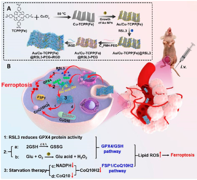 組成:Au、Cu-TCPP(Fe)、RSL3、PEG、iRGD