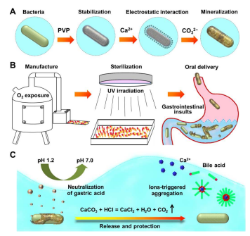 其他說(shuō)明:密封狀態(tài)下保質(zhì)期半年【主要優(yōu)勢(shì)】礦物涂層使細(xì)菌對(duì)制造的相關(guān)氧暴露、紫外線照射和75%乙醇具有強(qiáng)大的抗性。口服后,該涂層能夠主動(dòng)中和胃酸,并通過(guò)自發(fā)而快速的雙分解反應(yīng)釋放被包裹的細(xì)菌。除了酸中和外,產(chǎn)生的鈣離子可以觸發(fā)膽汁酸的膠束聚集,使胃酸和膽汁酸的雙重豁免,以實(shí)現(xiàn)不受損害的細(xì)菌活力。