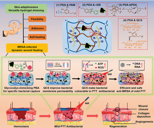 Versatile Hydrogel Dressing with Skin Adaptiveness and Mild Photothermal Antibacterial Activity for Methicillin-Resistant Staphylococcus Aureus-Infected Dynamic Wound Healing