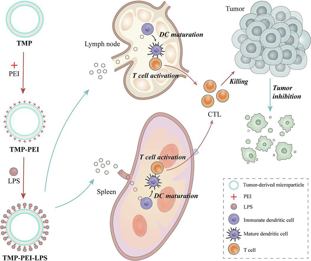 組成:腫瘤源性微粒子+脂多糖(LPS)+聚乙烯亞胺(PEI) 粒徑:200-500nm