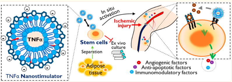 Surface Tethering of Inflammation-Modulatory Nanostimulators to Stem Cells for Ischemic Muscle Repair