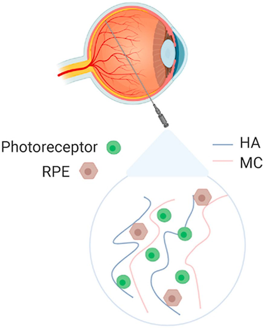 Hydrogel-mediated co-transplantation of retinal pigmented epithelium and photoreceptors restores vision in an animal model of advanced retinal degeneration