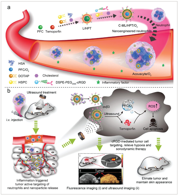 Nanoengineered Neutrophils as a Cellular Sonosensitizer for Visual Sonodynamic Therapy of Malignant Tumors