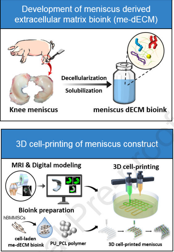 3D cell-printing of biocompatible and functional meniscus constructs using meniscus-derived bioink文章鏈接: