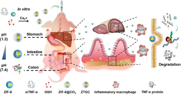 組成:siTNF-α GSH ZIF-8 CaCO3
