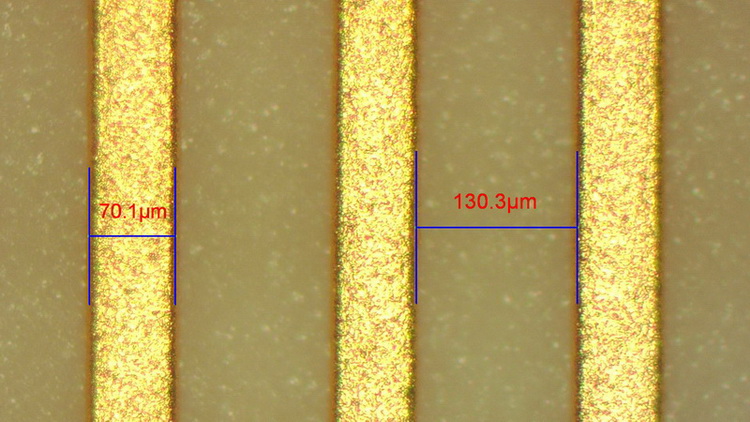 1. Substrate: alumina ceramics; overall dimensions: 20mm*10mm. 2. Finger width: 7oum, finger spacing: 130um, finger length: 6.3mm. Interdigital pairs: 20 pairs (40 fingers).