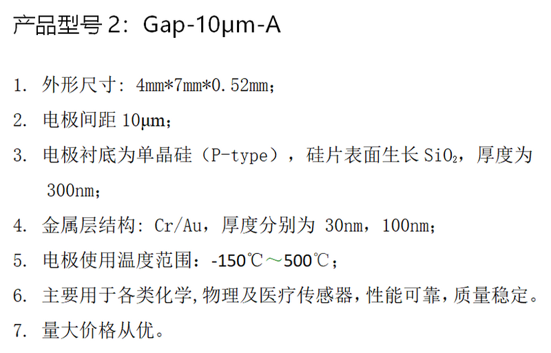 Microcapacitance interdigital gold electrode MEMS optical gas biosensor photoelectric detection single electrode