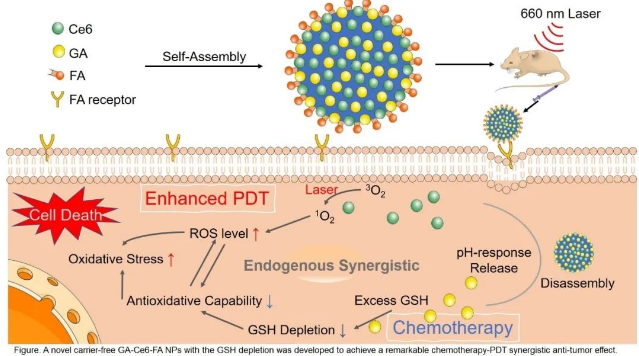 Title:Tumor-specific carrier-free nanodrugs with GSH depletion and enhanced ROS generation for endogenous synergistic anti-tumor by a chemotherapy-photodynamic therapy