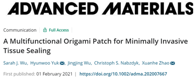 麻省理工趙選賀《AM》:微創組織密封的多功能折紙貼片抗菌水凝膠