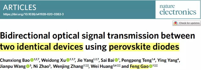 使用鈣鈦礦二極管在兩個相同器件之間進行雙向光信號傳輸