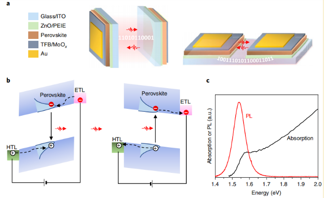 雙功能鈣鈦礦二極管作為發光和檢測器件的示意圖