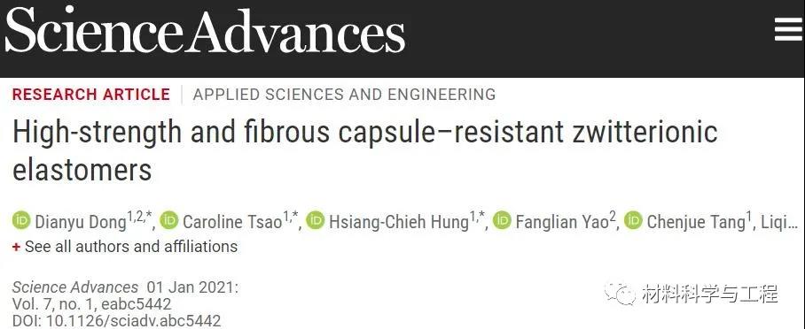 《Science》子刊:史上首次!高強度純兩性離子水凝膠