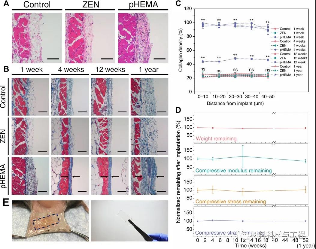高機械強度和長期抵抗纖維囊形成是植入性材料面臨的兩大挑戰。遺憾的是,這兩個截然不同的屬性并沒有有機結合在一起,而是相互妥協。近日,來自美國華盛頓大學&康奈爾大學的Shaoyi Jiang等研究者,報道了一種獨特的材料,通過“膨脹”和“鎖定”機制將兩種弱兩性離子水凝膠整合成類似彈性體的高強度純兩性離子水凝膠。相關論文以題為“High-strength and fibrouscapsule–resistant zwitterionic elastomers”發表在Science Advances上。