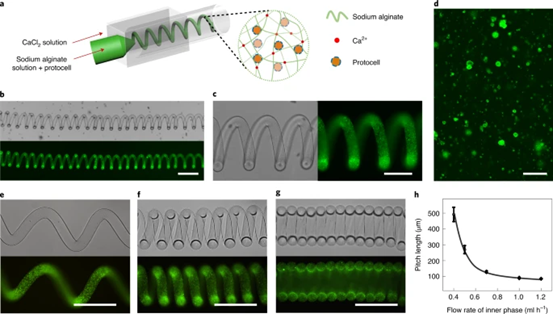 嵌入原始細胞的螺旋水凝膠絲的微流體制備