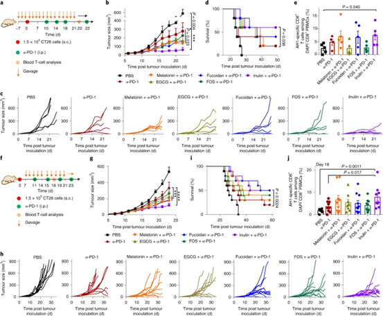 圖 5:口服菊粉凝膠有效增強(qiáng) α-PD-1 療法的療效。