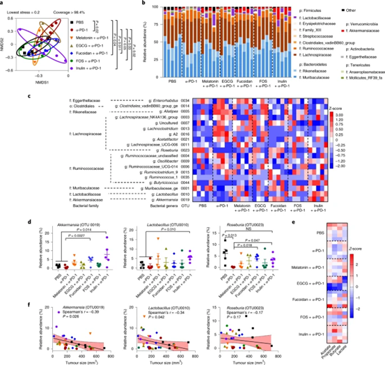 圖 3:菊粉加 α-PD-1 處理促進(jìn)了不同的腸道微生物群落。