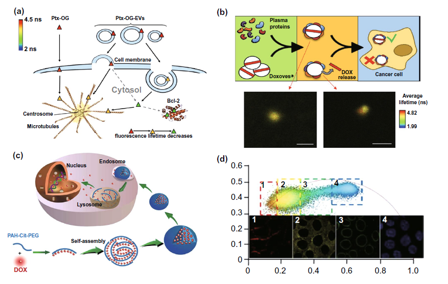 4. 利用熒光探針結(jié)合FLIM有望實(shí)現(xiàn)腫瘤外泌體中RNA檢測(cè),而以阿霉素(Dox)為代表的抗癌藥物遞送也可與外泌體策略結(jié)合,使用FLIM監(jiān)測(cè)優(yōu)化。