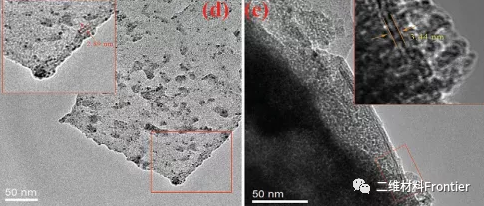 圖3 .d)TC和e)FTC的HRTEM圖像。