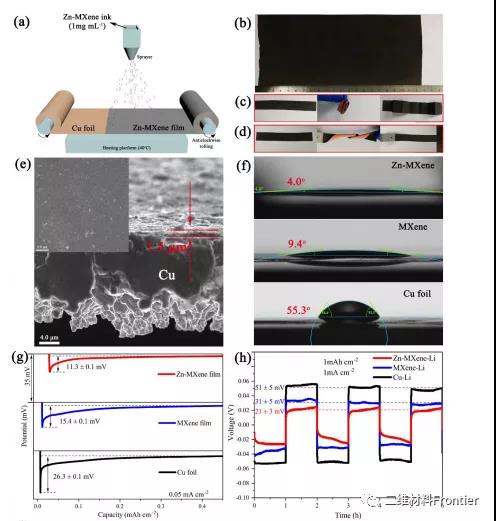 鋰金屬以其高的理論重量容量(3860 mAh g -1)和低電位(-3.04 V vs標準氫電極(SHE))被認為是最有前景的鋰基電池陽極之一。不幸的是,在重復鍍剝過程中,鋰陽極普遍存在不可控的枝晶,導致鋰電池循環壽命短,甚至短路。在這里,單鋅原子固定在MXene (Ti3C2Clx)層(Zn-MXene)有效地誘導Li成核和生長。在初始鍍階段,由于Zn原子的大量存在,鋰在Zn- mxene層表面趨于均勻成核,然后由于邊緣處強烈的避雷針效應,沿成核位置垂直生長,形成碗狀鋰,但沒有鋰枝晶。因此,采用Zn-MXene薄膜作為鋰陽極,其過電位為11.3 mV,循環壽命長(1200小時),深度剝鍍可達40 mAh cm-2。