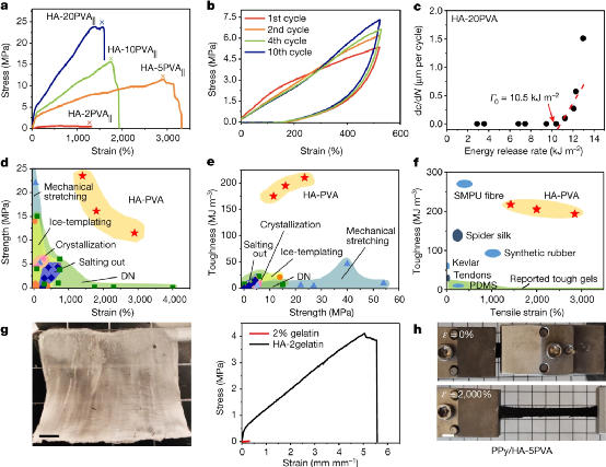 In addition, these hydrogels can be used to prepare artificial tendons, ligaments and cartilage that are 10 times stronger than natural tissues. Although hydrogels mainly contain water with a small amount of polymer (about 10% polymer), they are more durable than 100% polymer Kevlar and rubber. Prior to this, such a breakthrough had never been achieved in water-containing polymers. The new hydrogels can also provide coatings for implantable or wearable medical devices to improve their fit, comfort, and long-term performance. This work demonstrates a promising approach for man-made biomaterials that are comparable or even stronger than natural biological tissues. The results were published in the journal Nature.
