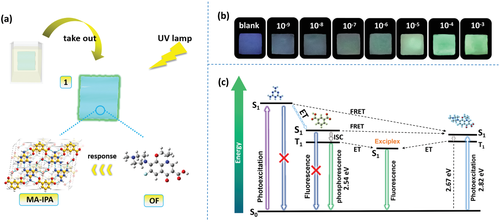 The team built a dual emitter based on a simple synthesis strategy Eu@MA-IPA@SA The film (1). Chroma and ratio fluorescence sensing mode, high selectivity, high sensitivity and low DL of 1 pair of of of and FQ indicate that dual emission 1 is an excellent fluorescence sensor for drug detection. The fluorescence response mechanism of of of and FQ is not only deeply explored, but also used to build an excellent optical anti-counterfeiting platform for information encryption and decryption. By controlling the intensity of long afterglow and excitation, specific information can be obtained on demand. This work provides a simple and feasible method for the preparation of double emitting Eu3+ functionalized HOF based hydrogel films, which widens the practical application of the next generation HOF based light-emitting films.