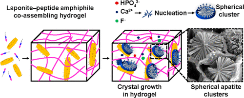 The team developed a co assembled organic-inorganic hydrogel platform for crystal growth in vitro, mediated by the particle attachment mechanism in the 3D supramolecular restriction framework. The design strategy depends on the electrostatic interaction between Lap nanoscale and cationic PAH3 molecules to integrate the intrinsic characteristics of organic and inorganic components into unique organic inorganic hydrogel structures. The obtained materials show high surface area, high mechanical properties and self repairing properties. In addition, the co assembled PA-Lap hydrogel shows a nano scale structure which can be used as a sealed space for hydroxyapatite to grow from ordered nanorods to well-defined spherical clusters. This study explored this mineralization mechanism as a biomimetic 3D model to regulate the nucleation and spatiotemporal organization of FHA.
