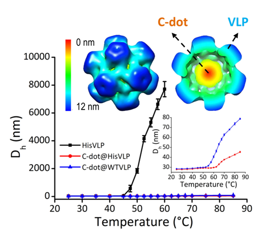 The function of VLP based materials or devices (such as drug delivery, disease diagnosis, nano confinement catalysis, etc.) largely depends on the structural stability of VLP, while the stability of natural VLP can not meet the harsh requirements of practical application. Li Feng s research group and collaborators, through packaging carbon dots (c-dots) in simian virus 40 (SV40) VLP, significantly improved the assembly yield, stability (pH, heat, enzyme resistance, hardness) and sequence plasticity of SV40 VLP (Fig. 1); It is found that the extensive interface interaction between c-dot and VLP cavity is the reason for the above performance enhancement. The hybrid assembly system formed by SV40 VLP and c-dot provides a robust technical platform for the construction of new vaccines, multifunctional tumor diagnosis and treatment devices and other applications. This achievement was recently published in small (DOI: 10.1002 / small. 202101717). Zhang Wenjing, a doctoral student of Wuhan Institute of Virology, is the first author of the paper. Li Feng, Cao Sheng and Ge jiechao are the co corresponding authors of the paper.