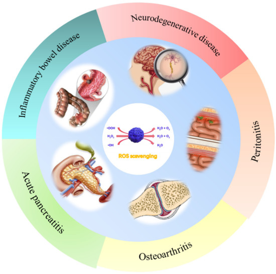 Treatment of inflammatory diseases: Prussian blue nanoenzymes can reduce oxidative stress and inflammation by simulating the activity of superoxide dismutase and catalase to remove excess reactive oxygen species in the body. Prussian blue nanoenzymes can also be treated at specific sites of inflammation through photothermal effects or drug carrier function.
