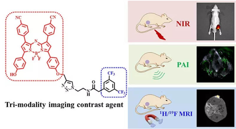 多模態對比劑是指通過一次注射一種對比劑,便可同時進行CT、MRI、熒光等兩種或兩種以上影像設備聯合成像的對比劑。借助不同的納米技術平臺將兩種或多種對比劑整合為一,形成一些新型的聯合對比劑,即多模態對比劑,可同時用于不同影像設備的檢測,實現多種顯像模式的優勢互補。這種all-in-one的納米粒子平臺的設計思路在醫學診斷中具有非常重要的現實意義。多模態造影劑的應用,一方面能夠得到更全面更為真實的診斷疾病信息,有效提高診斷準確度,另一方面可減輕病人用藥的痛苦,減少多次用藥帶來的毒副作用和交叉影響,也可為病人節省醫療費用。
